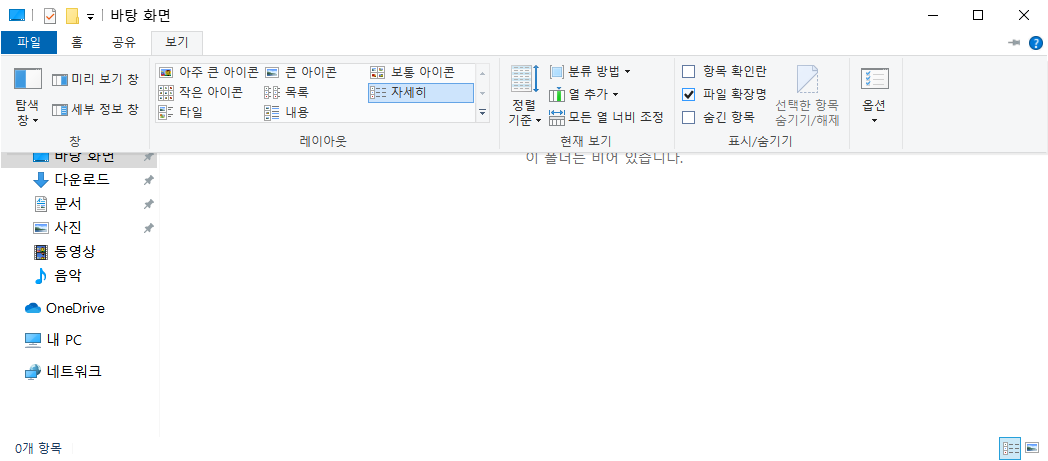 2. [보기]탭을 누르면 아래처럼 메뉴바가 내려옵니다. 여기서 '파일 확장명' 옵션을 체크해줍니다.