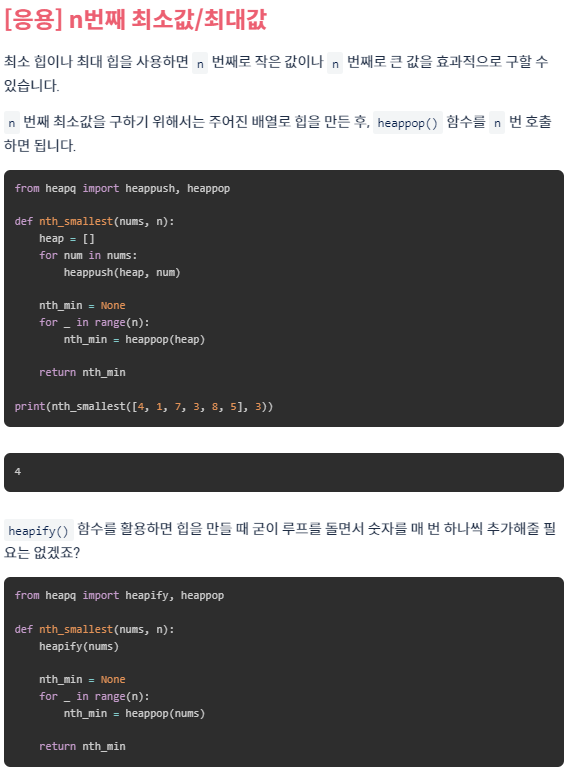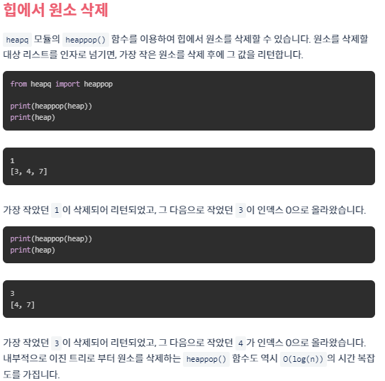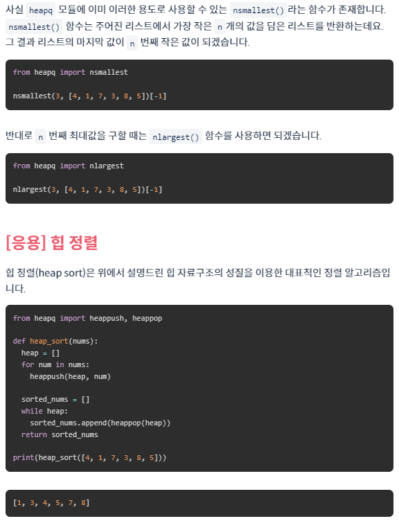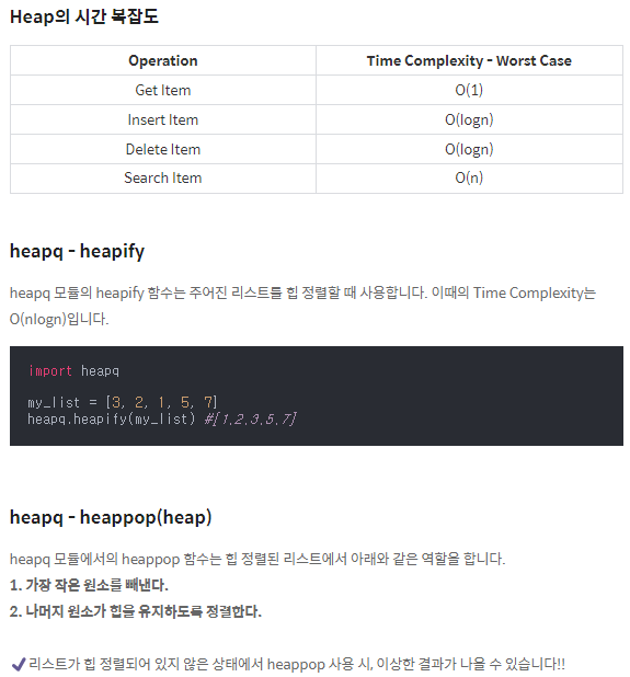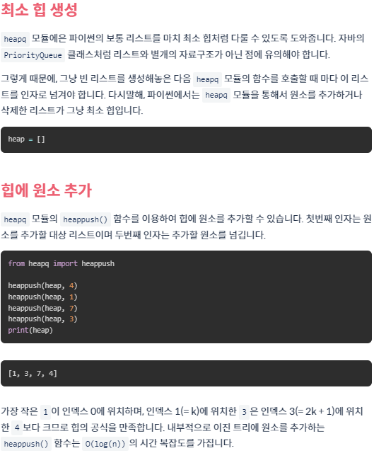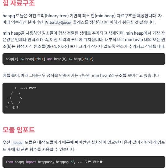 #파이썬에서는 평범한 리스트에 heapq 함수를 사용하는 것일 뿐이다. 따라서 heappush를 한다고 힙이 되는 것은 아니다.