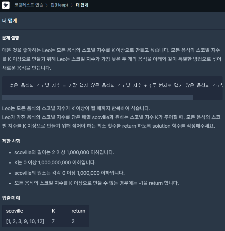 def solution(scoville, K):