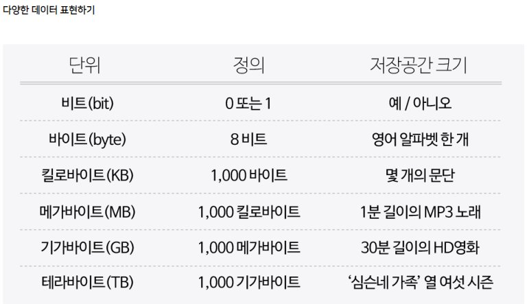 정보를 저장하고 연산을 수행하기 위해 컴퓨터는 비트(bit)라는 측정 단위를 씁니다. 비트는 이진 숫자라는 뜻을 가진 “binary digit”의 줄임말이며, 0과 1, 두 가지 값만 가질 수 있는 측정 단위입니다.