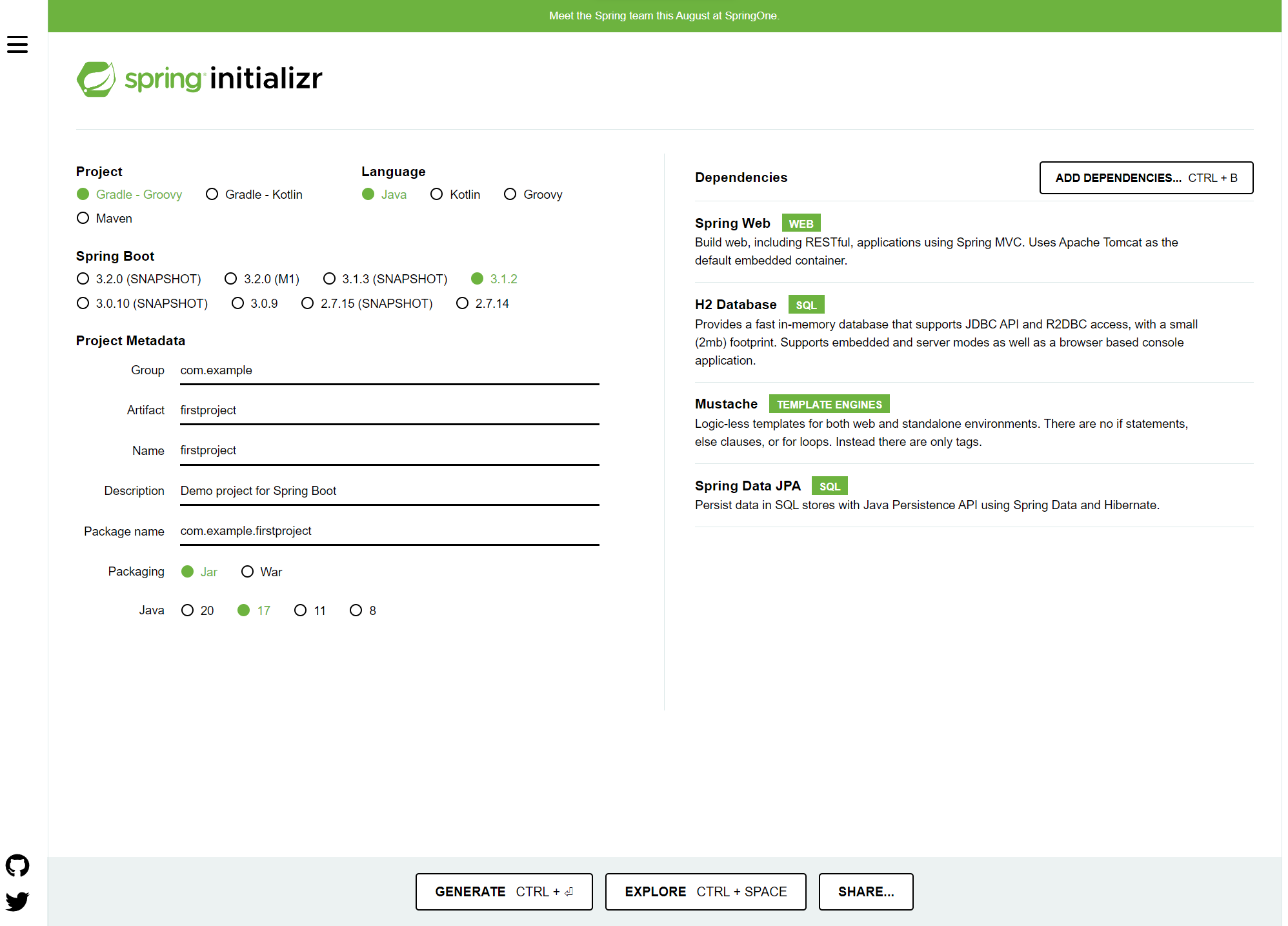 컨트롤러에서, return "greetings" 하면 template 디렉터리에서 greetings.mustache 파일 찾아 전송