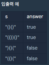 '(' 또는 ')' 로만 이루어진 문자열 s가 주어졌을 때, 문자열 s가 올바른 괄호이면 true를 return 하고, 올바르지 않은 괄호이면 false를 return 하는 solution 함수를 완성해 주세요.