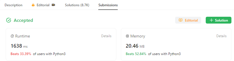 - 위의 예외 케이스를 해결한 풀이, 정상적으로 통과